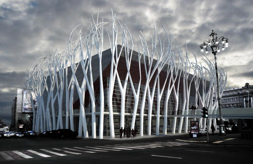 urbani si arrichisce con una foresta incantata. La piazza Pushkin e il suo giardino trovano un nuovo scenario per fare incontrare la poesia, il teatro e il sogno del cinema. La città trova nuovamente una icona della architettura del XX secolo.