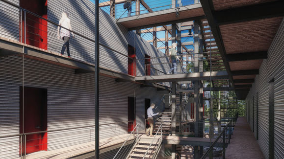La ristrettezza degli spazi muove il progetto ad interiorizzare in una galleria centrale le funzioni pubbliche e ad affacciare su di essa i volumi abitativi delle stanze della struttura ricettiva.